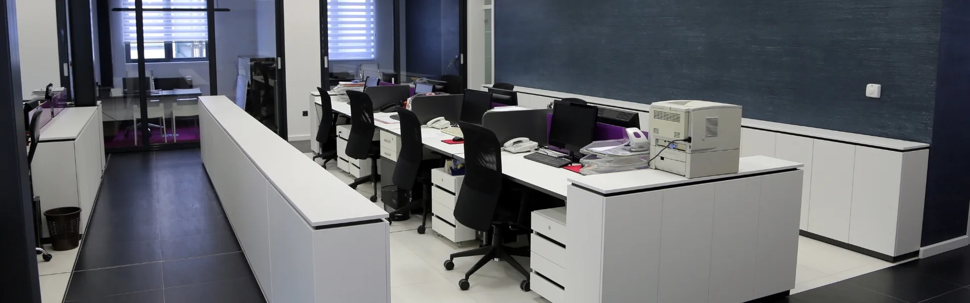 Technikschränke mit definiertem Wartungszugang, Servicetische für Druckergeräte und Kommunikationstechnik, Akustiktrennwände und Aufbewahrungslösungen für Betriebsmittel — alles wird auf die räumlichen und betrieblichen Anforderungen des Projekts abgestimmt und koordiniert mit den übrigen Elementen der Leitwarte geplant.